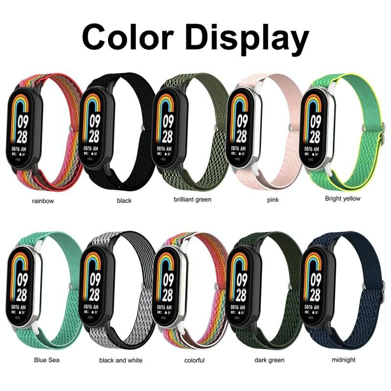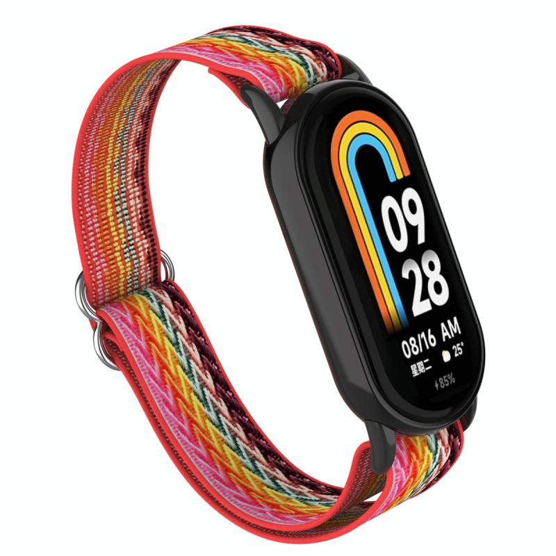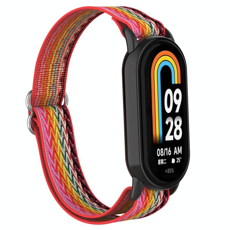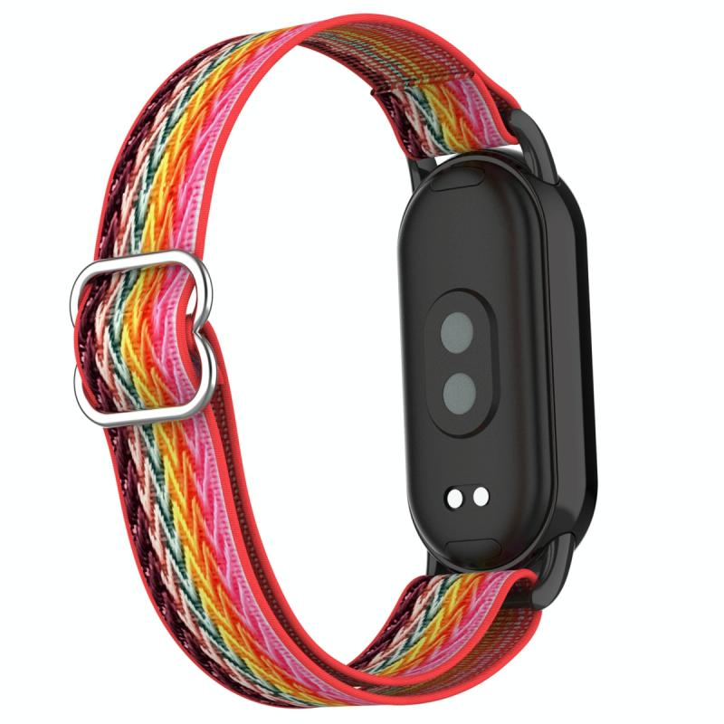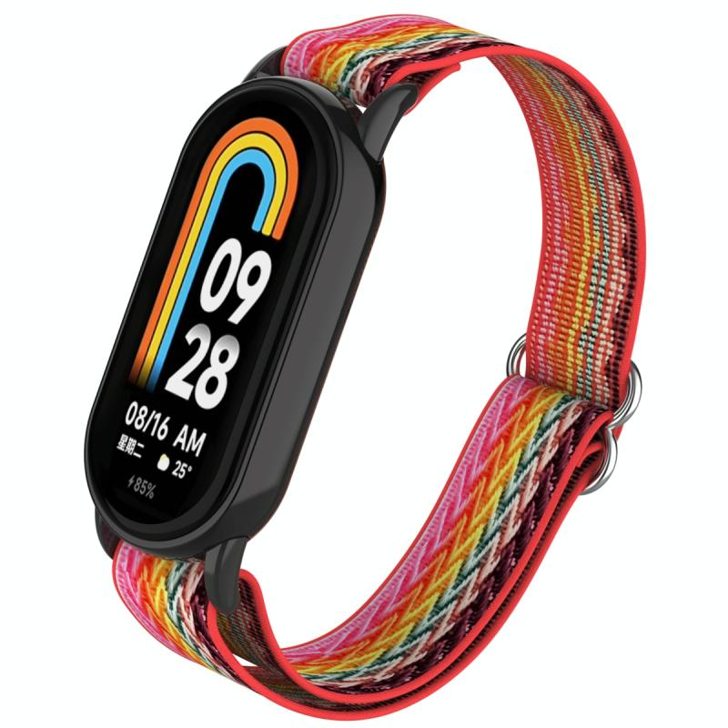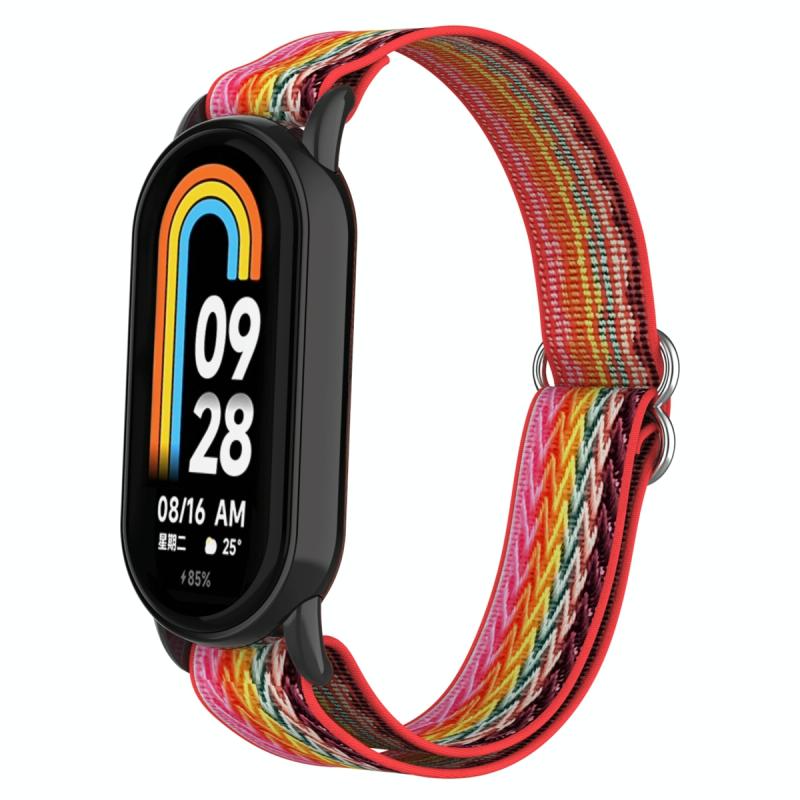 For Xiaomi Smart Band 9 / 8 Plastic Plug Wave Elastic Nylon Watch Band(Rainbow)