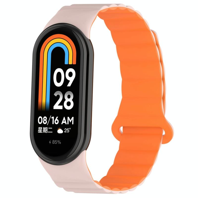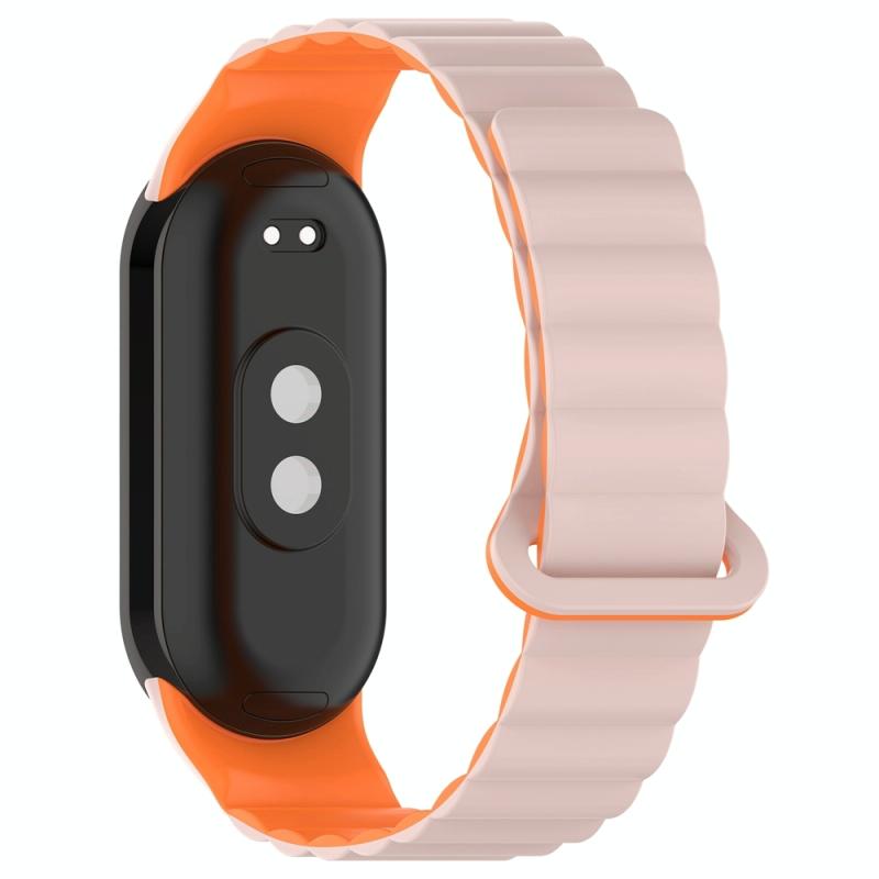 For Xiaomi Smart Band 9 / 8 Two Color Magnetic Silicone Watch Band(Pink Orange)