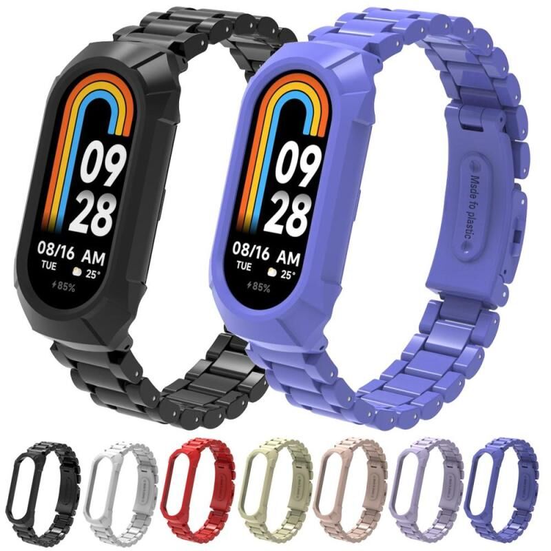 For Xiaomi Smart Band 9 / 9 NFC / 8 / 8 NFC Watch Frame Integrated Three Beads Plastic Watch Band(Black)