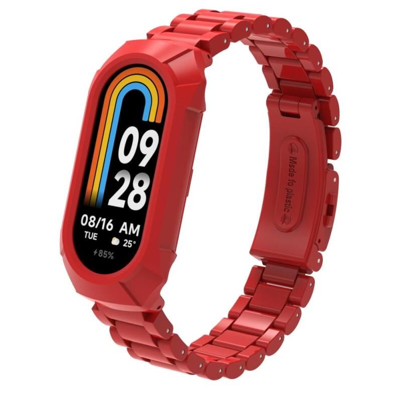 For Xiaomi Smart Band 9 / 9 NFC / 8 / 8 NFC Watch Frame Integrated Three Beads Plastic Watch Band(Red)