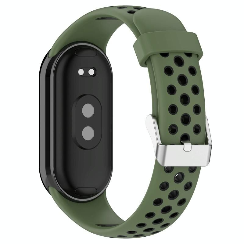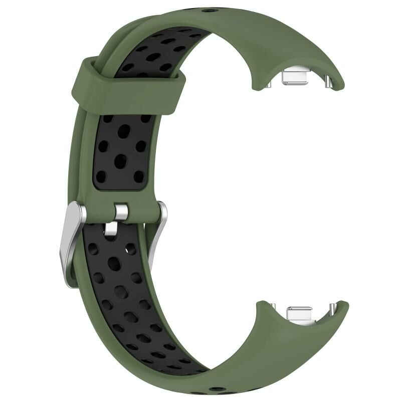 Για το Xiaomi Smart Band 9 / 9 NFC Holes Style Metal Connector Δύο χρώμα σιλικόνης ρολόι μπάντα (Στρατού πράσινο μαύρο)