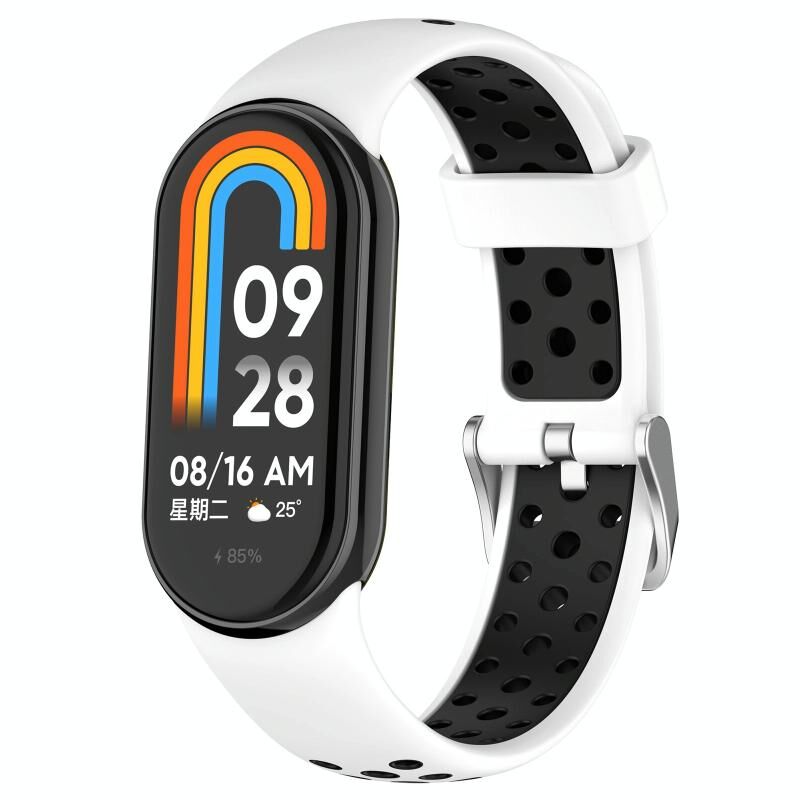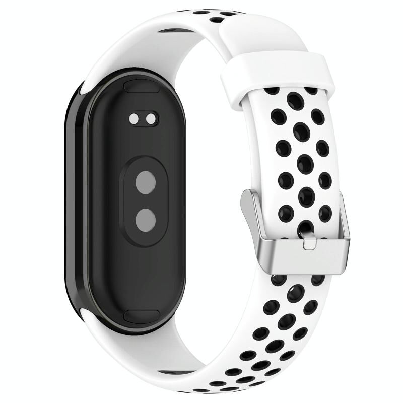 Για το Xiaomi Smart Band 9 / 9 NFC Holes Style Metal Connector Δύο χρώμα σιλικόνης ρολόι μπάντα (λευκό μαύρο)