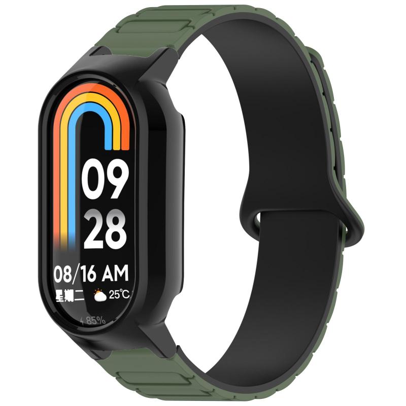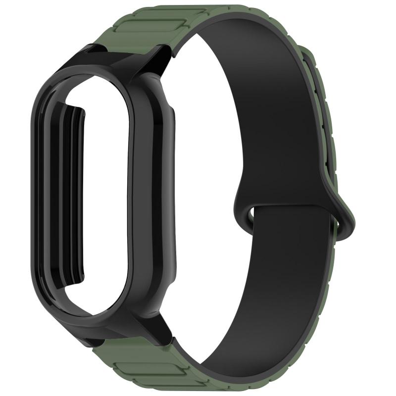 For Xiaomi Smart Band 9 / 9 NFC PC Watch Frame I-Shaped Magnetic Silicone Watch Band(Green+Black)