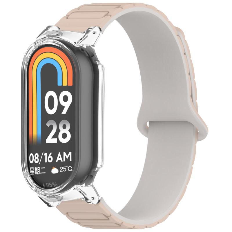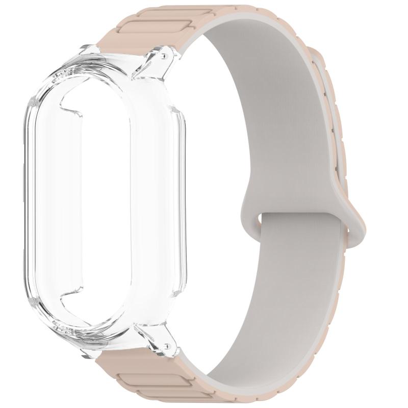 For Xiaomi Smart Band 9 / 9 NFC PC Watch Frame I-Shaped Magnetic Silicone Watch Band(Milk Tea+Transparent)