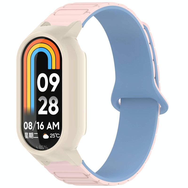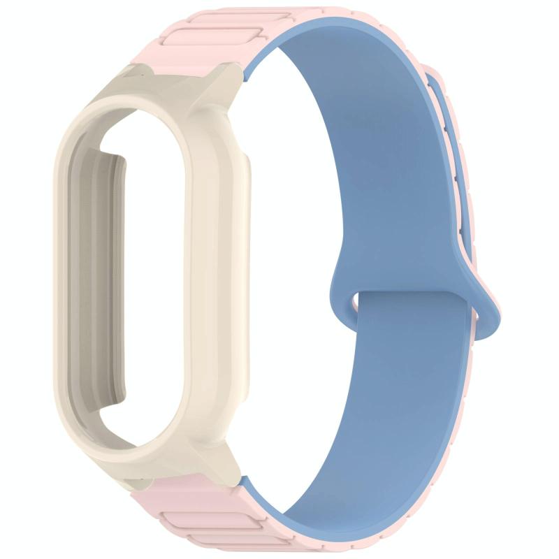 For Xiaomi Smart Band 9 / 9 NFC PC Watch Frame I-Shaped Magnetic Silicone Watch Band(Pink Blue+White)
