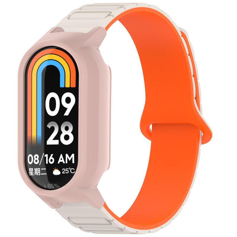 For Xiaomi Smart Band 9 / 9 NFC PC Watch Frame I-Shaped Magnetic Silicone Watch Band(Starlingt+Pink)