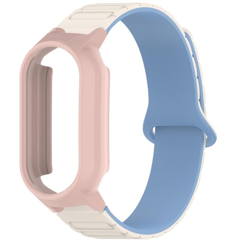 For Xiaomi Smart Band 9 / 9 NFC PC Watch Frame I-Shaped Magnetic Silicone Watch Band(White Blue+Pink)