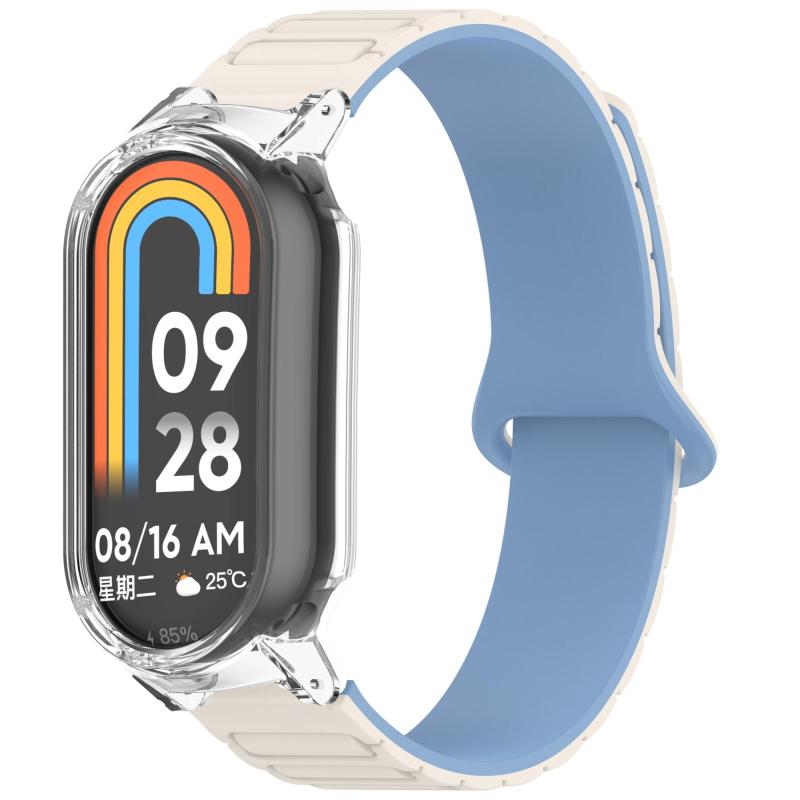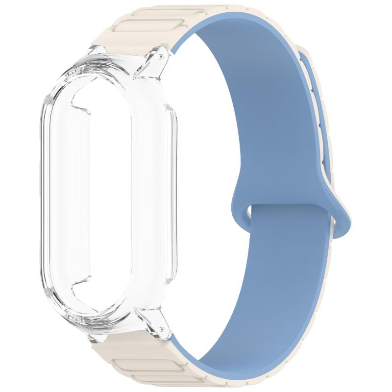 For Xiaomi Smart Band 9 / 9 NFC PC Watch Frame I-Shaped Magnetic Silicone Watch Band(White Blue+Transparent)