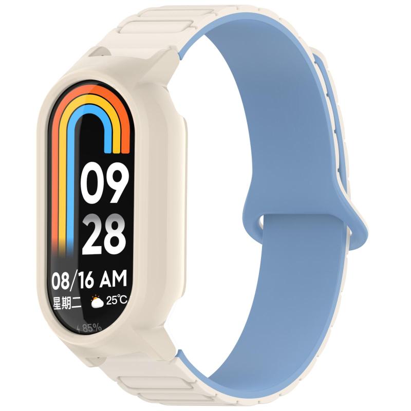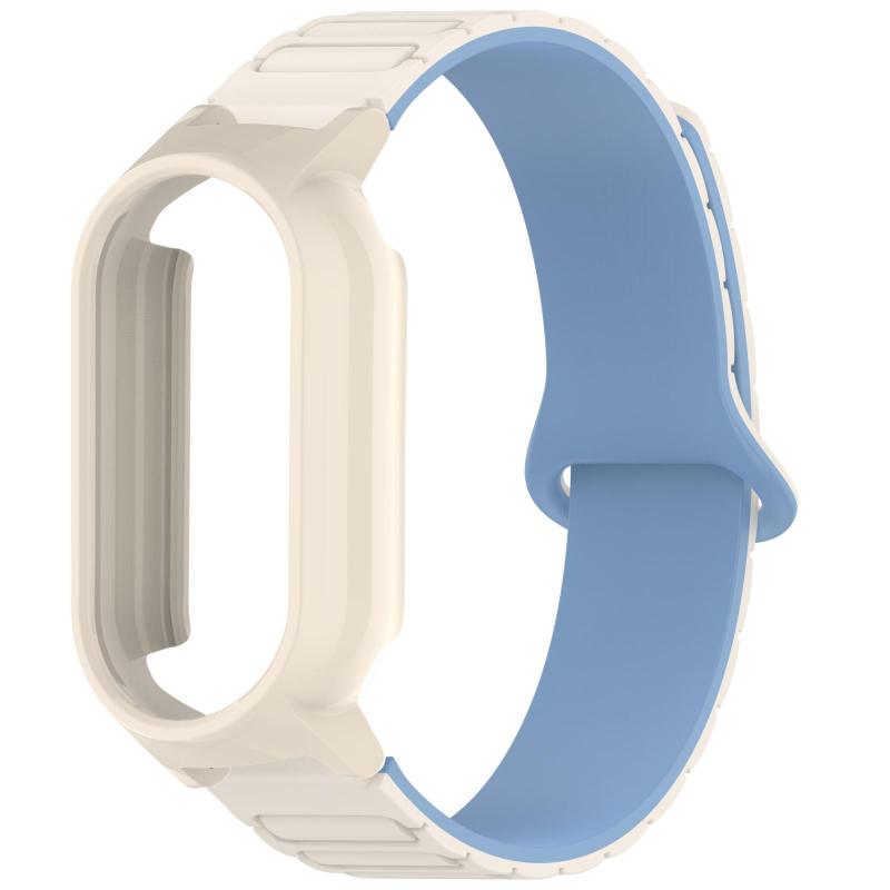 For Xiaomi Smart Band 9 / 9 NFC PC Watch Frame I-Shaped Magnetic Silicone Watch Band(White+Blue White)