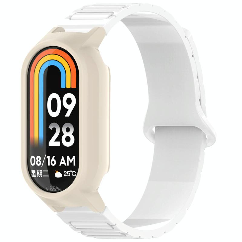 For Xiaomi Smart Band 9 / 9 NFC PC Watch Frame I-Shaped Magnetic Silicone Watch Band(White+White)