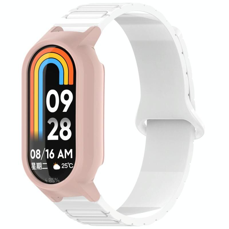 Για το Xiaomi Smart Band 9 / 9 NFC Watch Case Integrated I-Shaped Magnetic Silicone Watch Band (White+Pink)