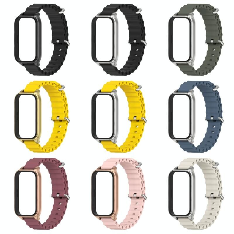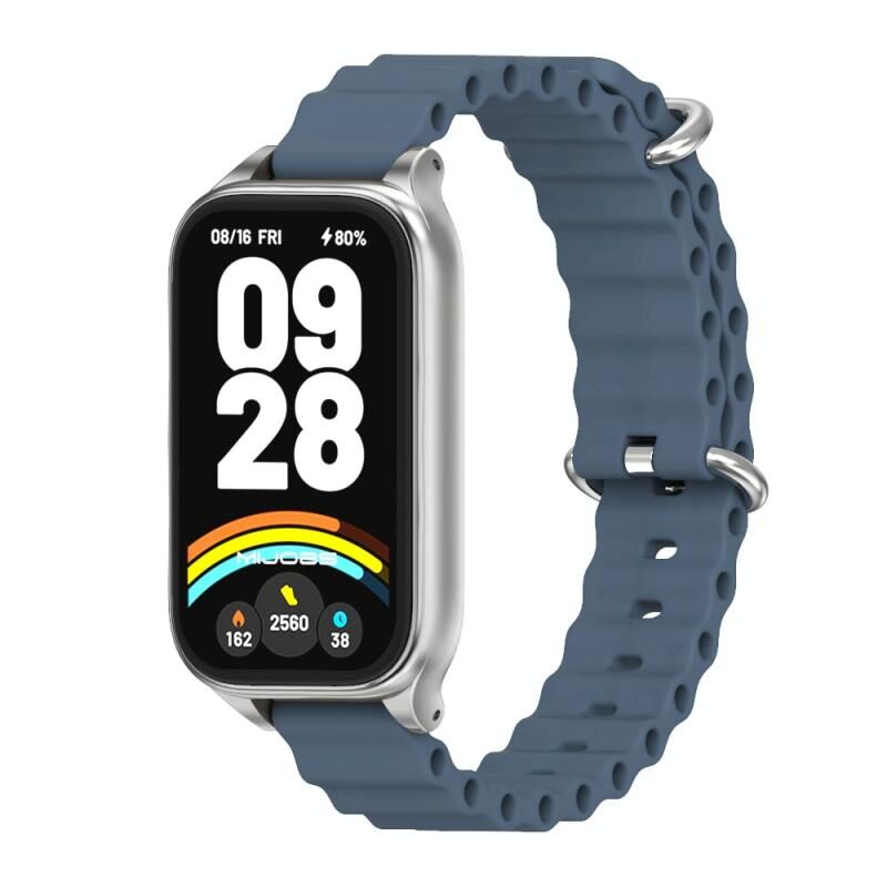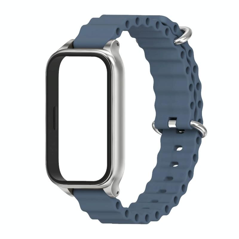 Για Xiaomi Smart Band 9 Active / Redmi Band 3 Mijobs Metal Shell Marine σιλικόνης ρολόι μπάντα (σκούρο μπλε ασημί) (MIJOBS)