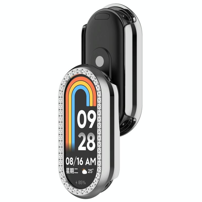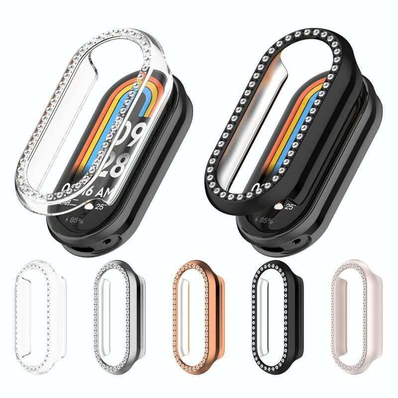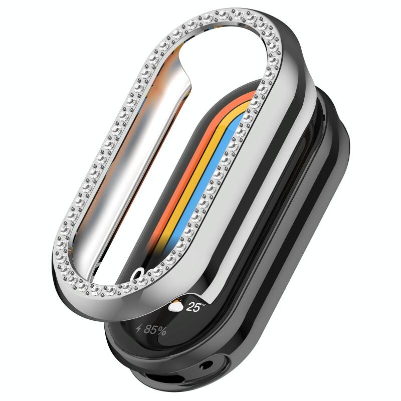 Για Xiaomi Smart Band 9 Diamond Half Coverage Hollow PC ρολόι προστατευτική θήκη (ασημί)