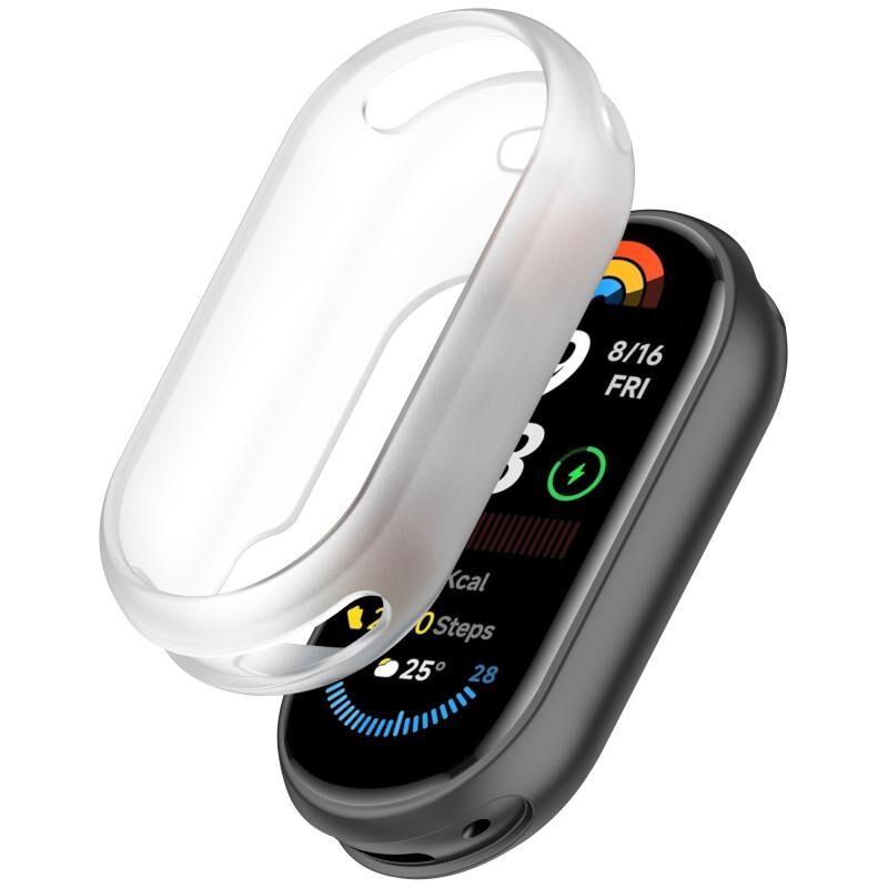 Για Xiaomi Smart Band 9 γυαλιστερή επιφάνεια σιλικόνης ρολόι προστατευτική θήκη (διαφανές λευκό)