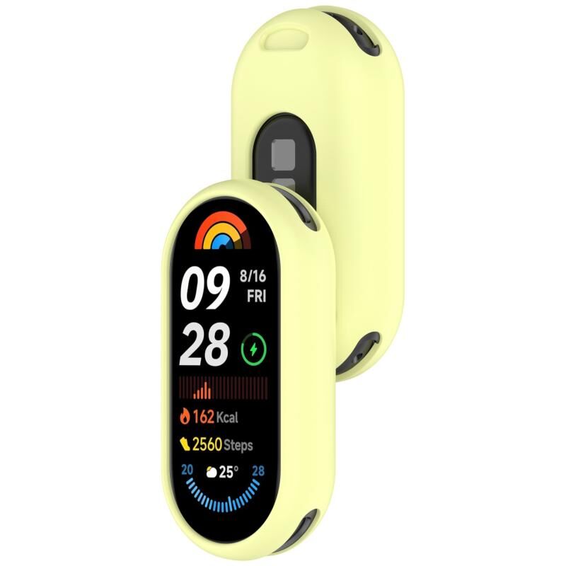 Για Xiaomi Smart Band 9 NFC γυαλιστερή επιφάνεια σιλικόνης ρολόι προστατευτική θήκη (ανοιχτό κίτρινο)