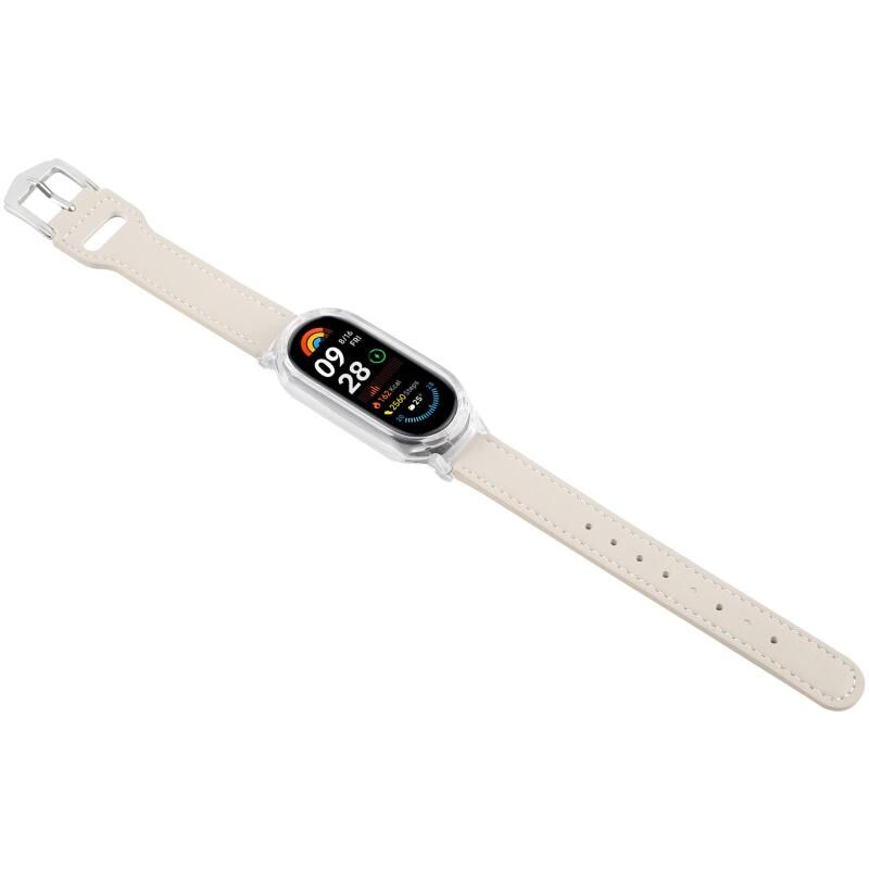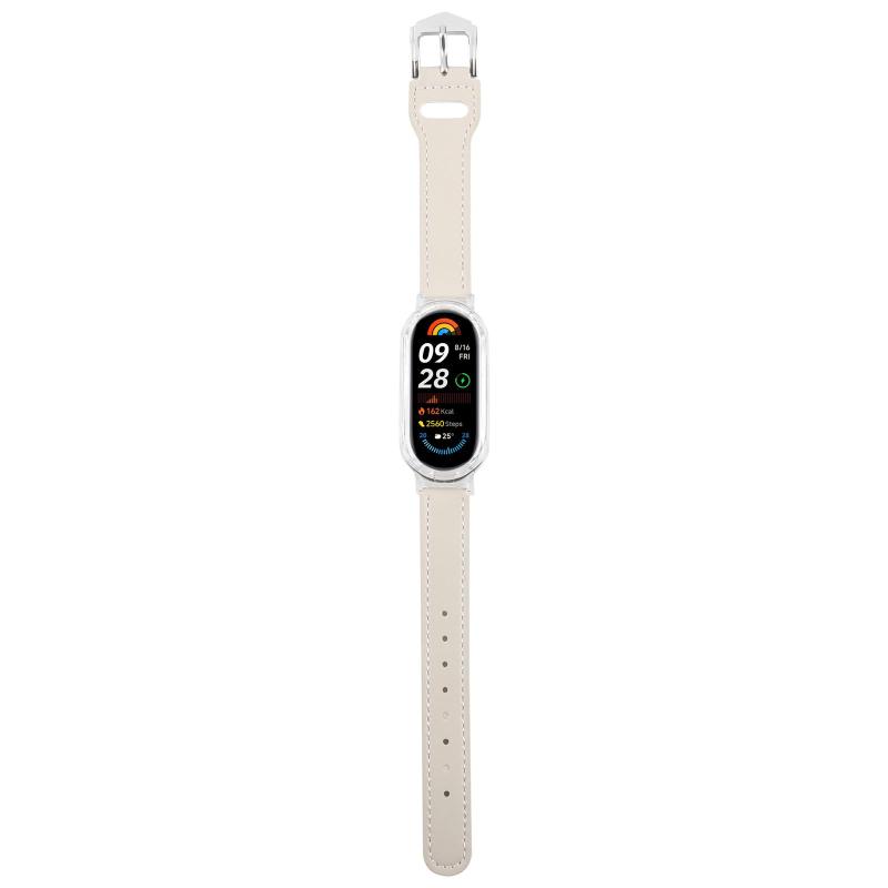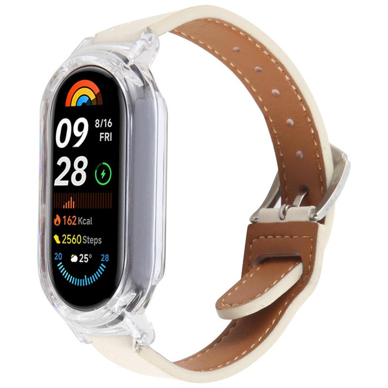 For Xiaomi Smart Band 9 PC Case Integrated Microfiber Leather Watch Band(Transparent+Beige White)