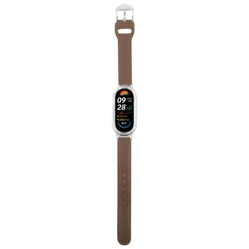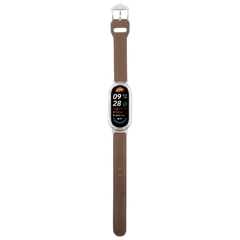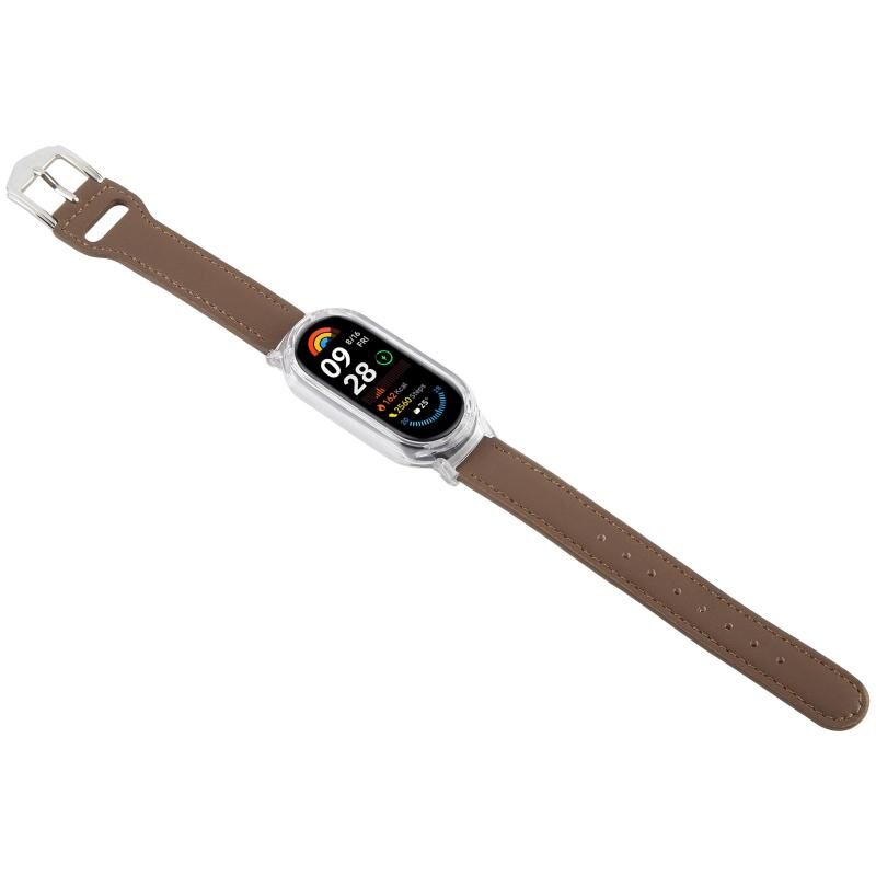 For Xiaomi Smart Band 9 PC Case Integrated Microfiber Leather Watch Band(Transparent+Coffee)
