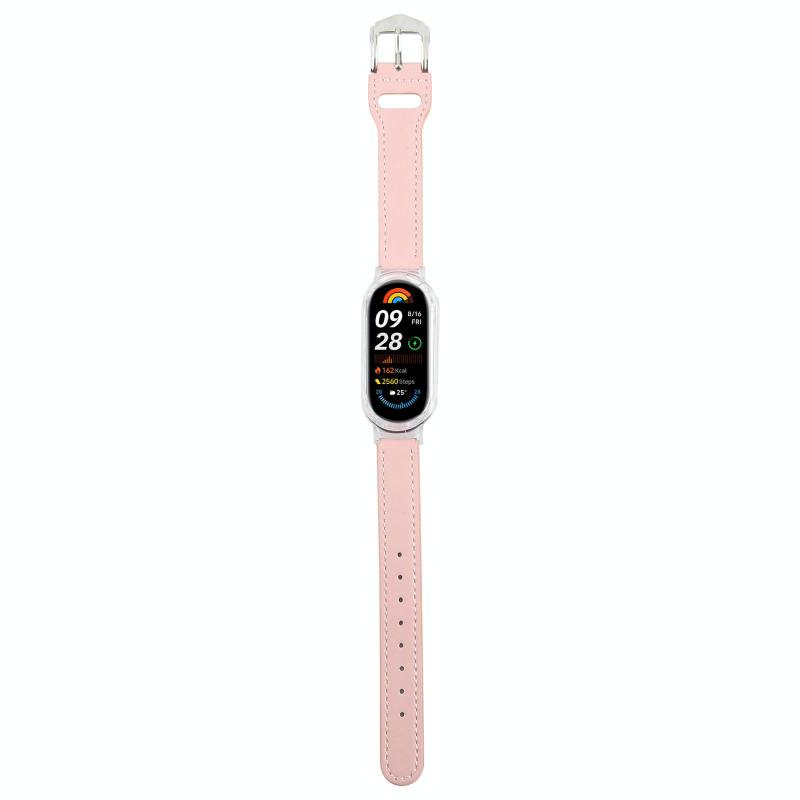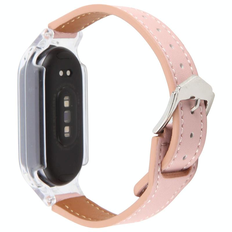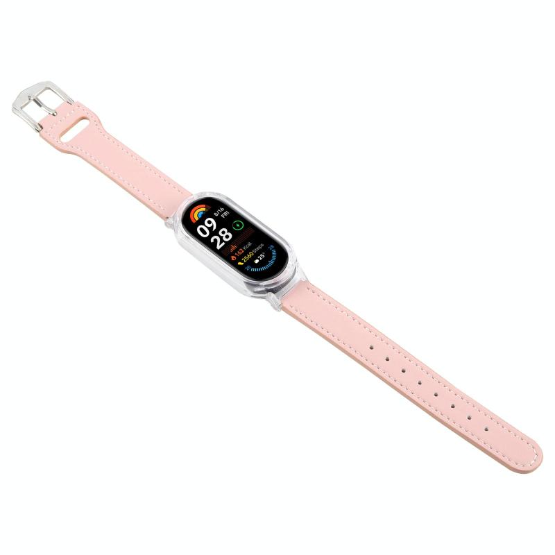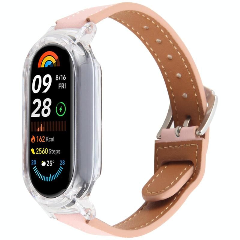 For Xiaomi Smart Band 9 PC Case Integrated Microfiber Leather Watch Band(Transparent+Pink)