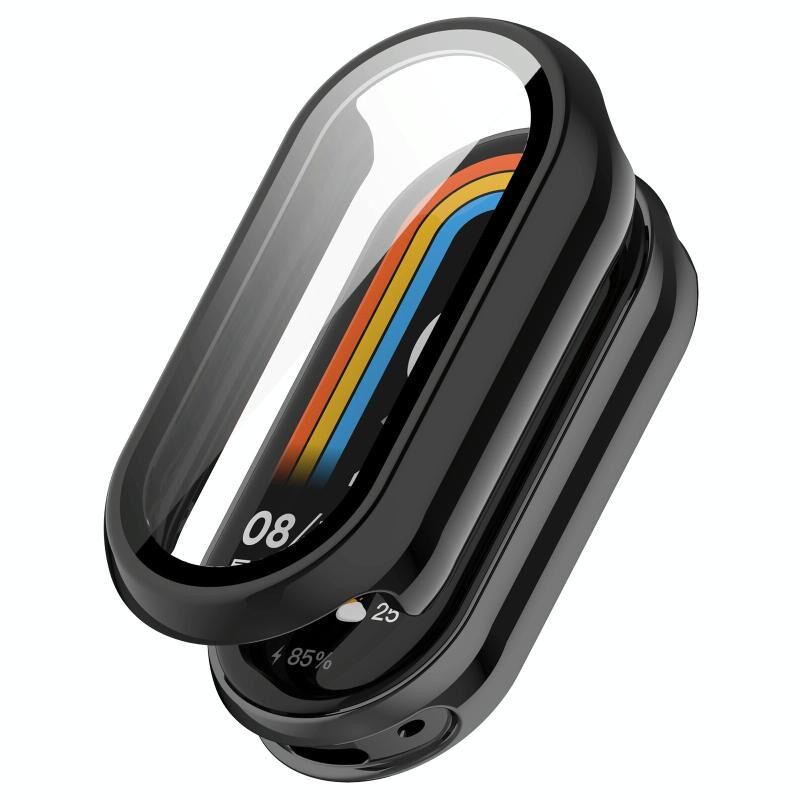 For Xiaomi Smart Band 9 PC + Tempered Film Integrated Smooth Surface Watch Protective Case(Black)