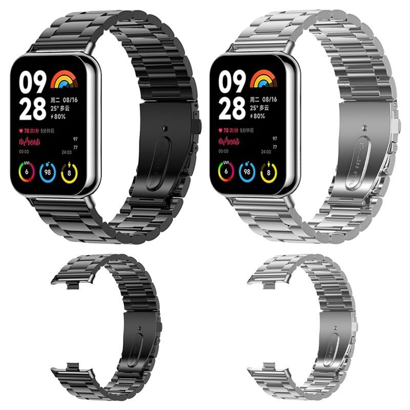 For Xiaomi Smart Band 9 Pro / 8 Pro Three Beads Stainless Steel Metal Watch Band(Silver)
