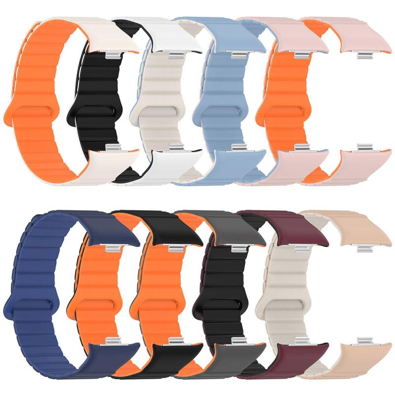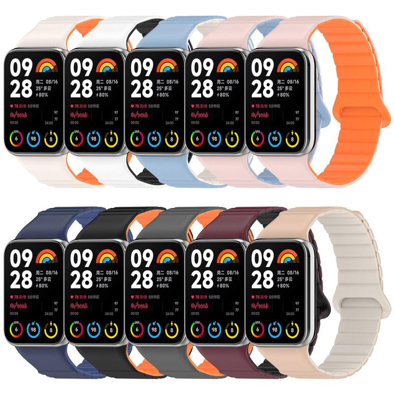 Για Xiaomi Smart Band 9 Pro / Redmi Watch 5 Διχρωμο Μαγνητικό Λουράκι Σιλικόνης (Milk Tea Πέτρα Λευκό)