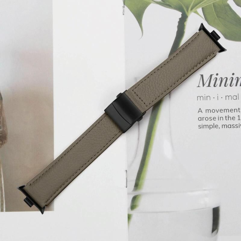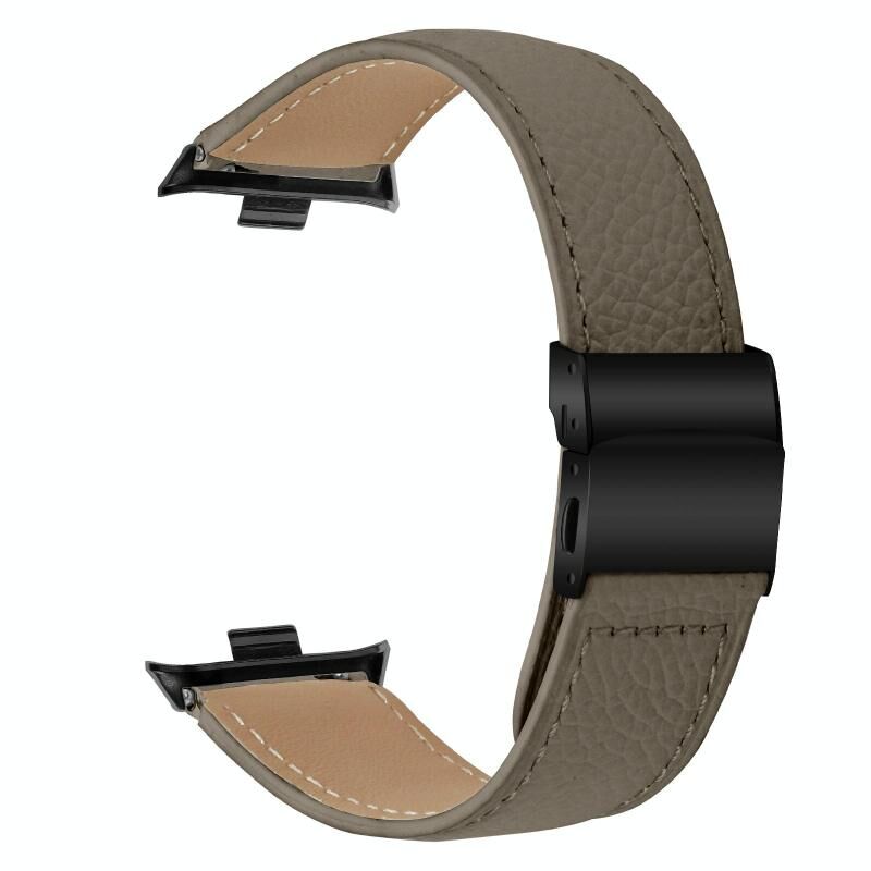 For Xiaomi Smart Bnad 9 Pro / Redmi Watch 5 Lychee Texture Black Turtle Back Buckle Leather Watch Band(Gray)