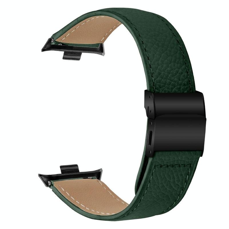 For Xiaomi Smart Bnad 9 Pro / Redmi Watch 5 Lychee Texture Black Turtle Back Buckle Leather Watch Band(Green)