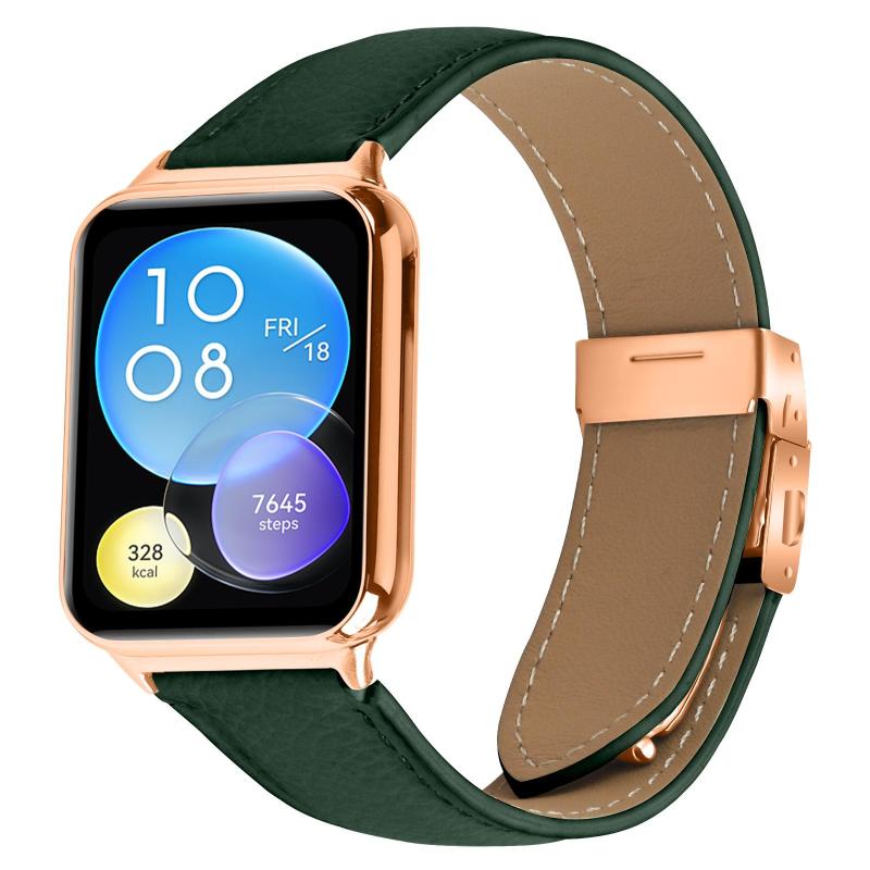 For Xiaomi Smart Bnad 9 Pro / Redmi Watch 5 Lychee Texture Rose Gold Turtle Back Buckle Leather Watch Band(Green)
