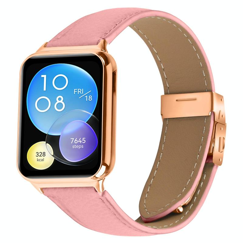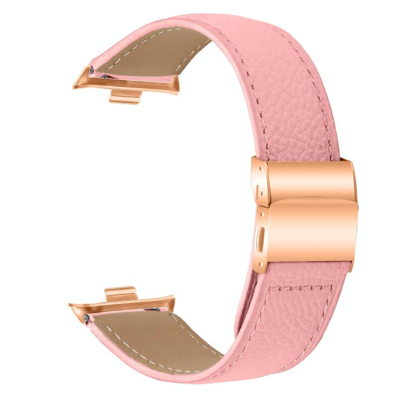 For Xiaomi Smart Bnad 9 Pro / Redmi Watch 5 Lychee Texture Rose Gold Turtle Back Buckle Leather Watch Band(Pink)