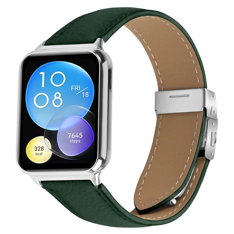 For Xiaomi Smart Bnad 9 Pro / Redmi Watch 5 Lychee Texture Silver Turtle Back Buckle Leather Watch Band(Green)