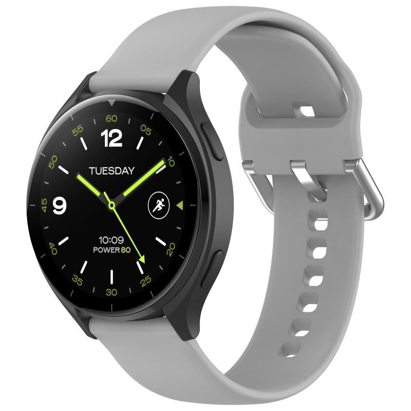 Για Xiaomi Watch 2 στερεό χρώμα μέταλλο ασημένια πόρπη σιλικόνης ρολόι μπάντα, μέγεθος: L(Gray)