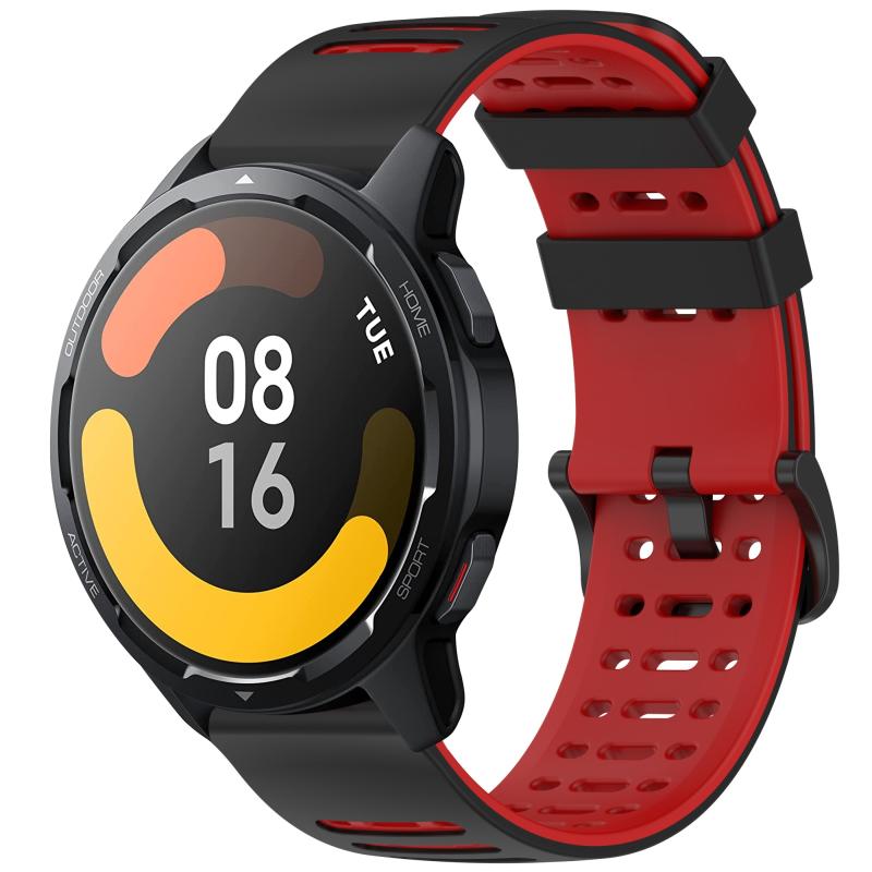 For Xiaomi Watch 22mm Hollow Three Rows Hole Two Color Silicone Watch Band(Black+Red)