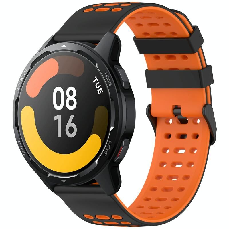 For Xiaomi Watch 22mm Three Rows Hole Two Color Silicone Watch Band(Black+Orange)