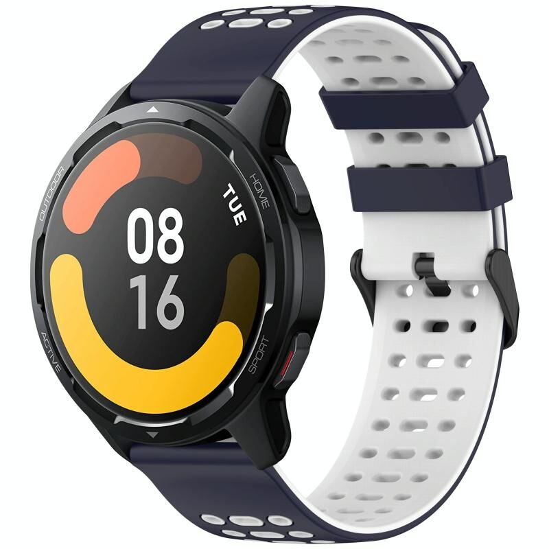 For Xiaomi Watch 22mm Three Rows Hole Two Color Silicone Watch Band(Midnight Blue+White)