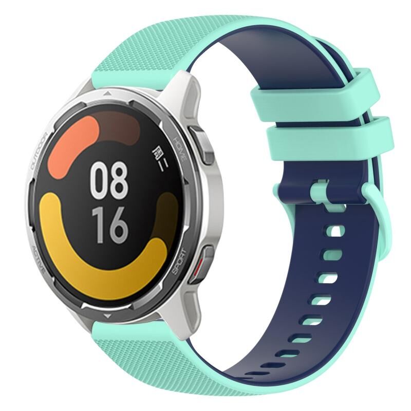 For Xiaomi Watch Color 2 22mm Checkered Two-Color Silicone Watch Band(Teal+Blue)