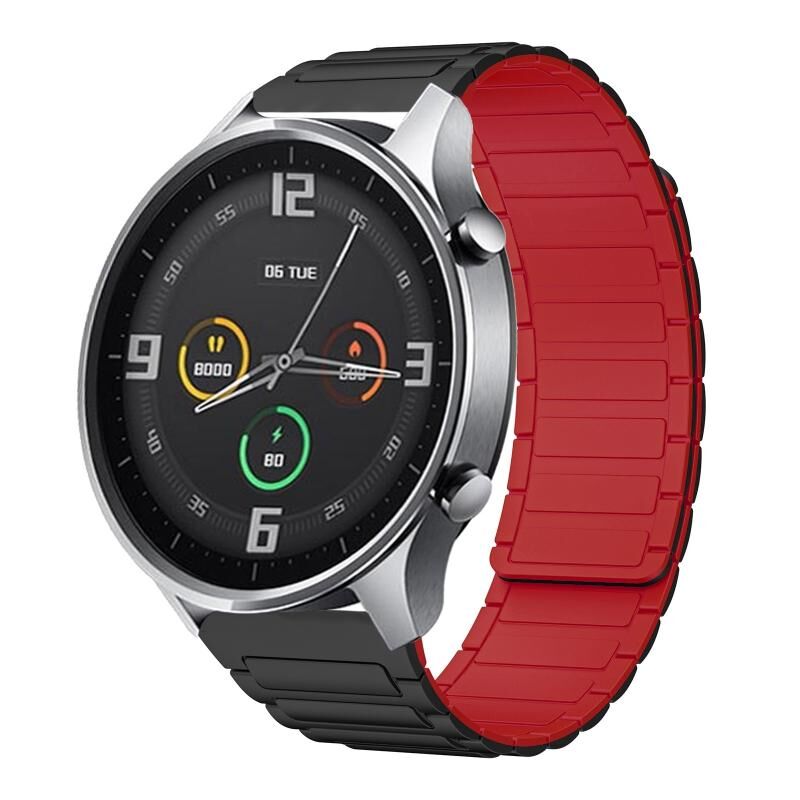 Για το Xiaomi Watch Color 22mm I-shaped μαγνητική ζώνη ρολογιού σιλικόνης (μαύρο+κόκκινο)