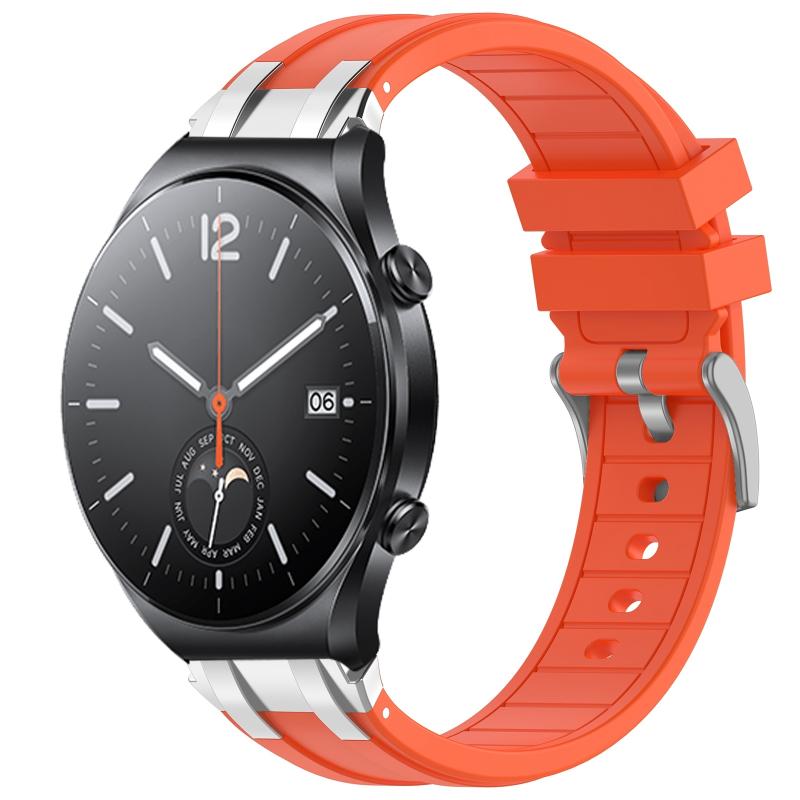For Xiaomi Watch S1 22mm Quick Release Silver Buckle Royal Silicone Watch Band(Orange)