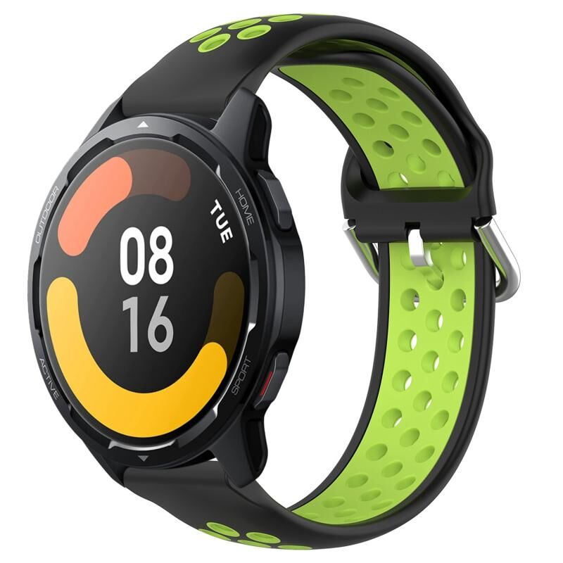 Για το Xiaomi Watch S1 Active 22mm διάτρητη αναπνεύσιμη αθλητική ζώνη ρολογιού σιλικόνης (μαύρο+Lime)