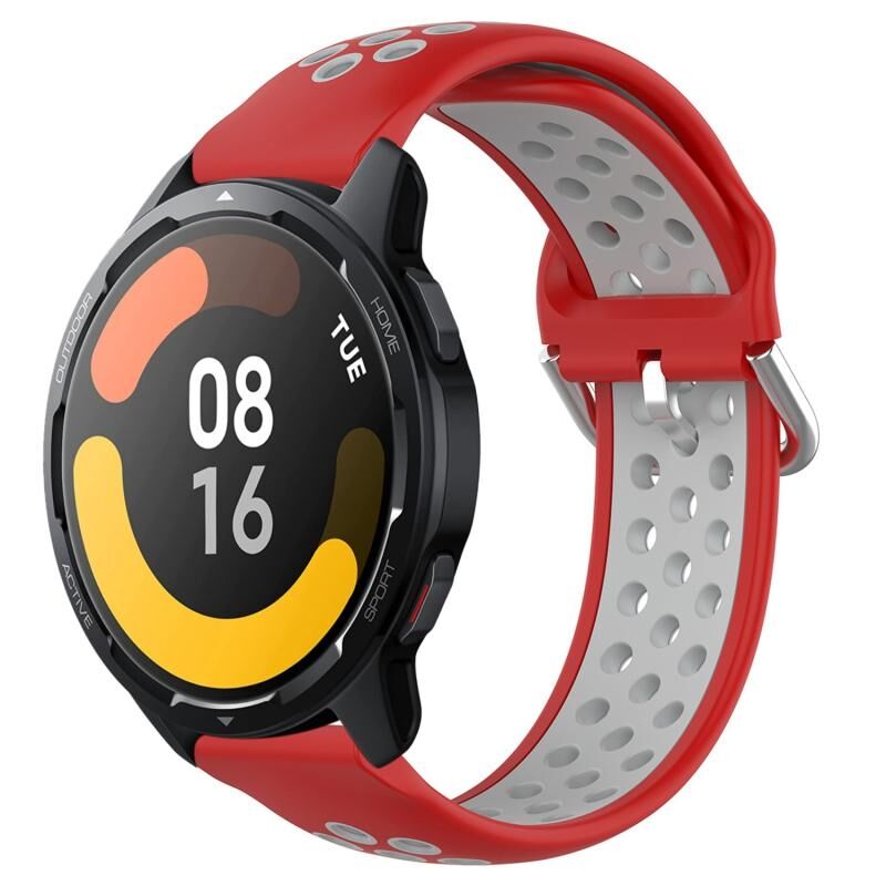 Για το Xiaomi Watch S1 Active 22mm διάτρητο αναπνεύσιμο αθλητικό λουράκι σιλικόνης (κόκκινο + γκρι)