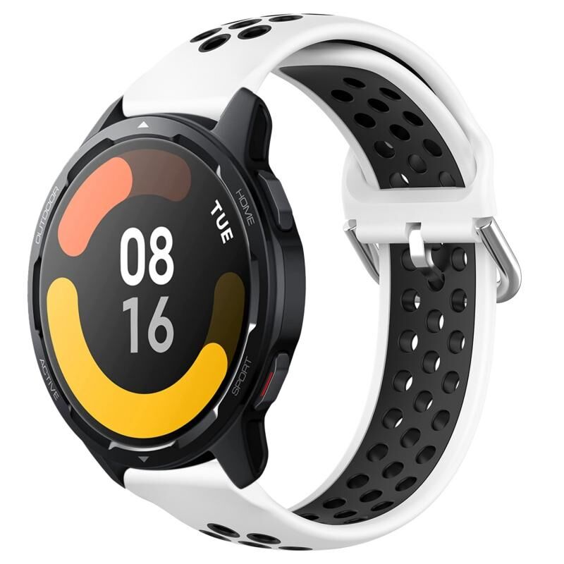 Για το Xiaomi Watch S1 Active 22mm διάτρητη αναπνεύσιμη αθλητική ζώνη ρολογιού σιλικόνης (λευκό + μαύρο)