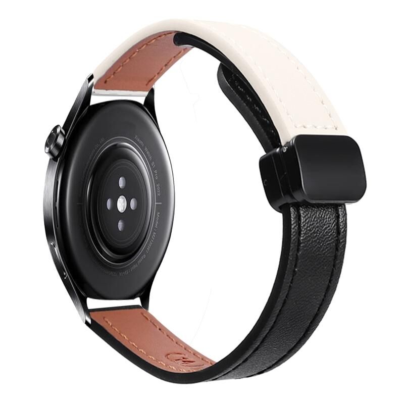 For Xiaomi Watch S1 Active 22mm Slim Magnetic Buckle Microfiber Leather Watch Band(Black+Apricot)
