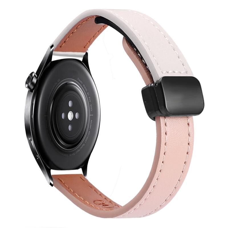 For Xiaomi Watch S1 Active 22mm Slim Magnetic Buckle Microfiber Leather Watch Band(Pink+Apricot)