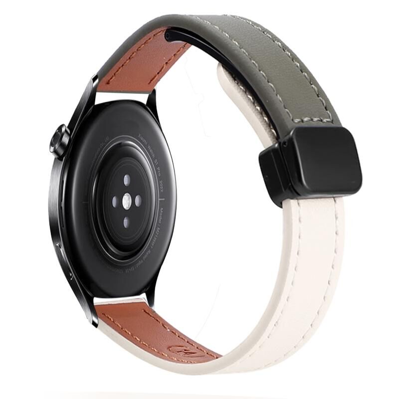 For Xiaomi Watch S1 Pro 22mm Slim Magnetic Buckle Microfiber Leather Watch Band(Apricot+Avocado Green)