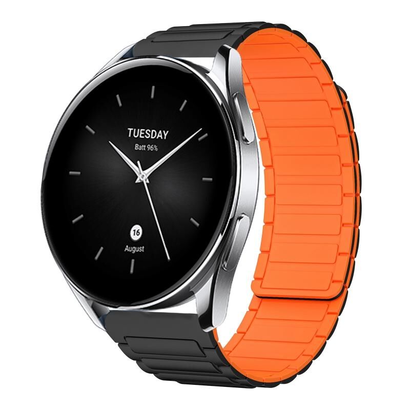 Για Xiaomi Watch S2 22mm I-shaped Μαγνητικό λουράκι σιλικόνης (Μαύρο+Πορτοκαλί)