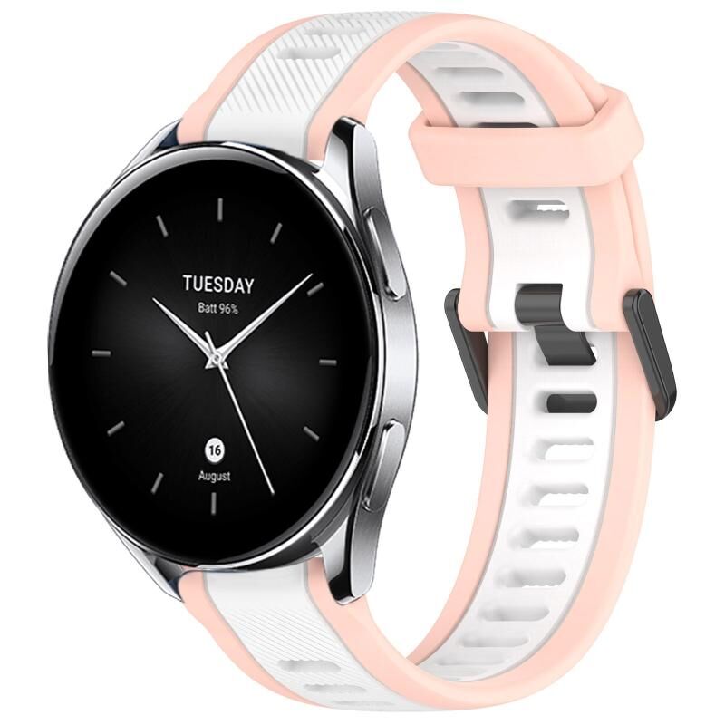 Για Xiaomi Watch S2 22mm Δύο χρώμα υφή σιλικόνης ρολόι μπάντα ρολογιών (λευκό + ροζ)