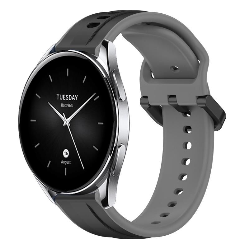 Για Xiaomi Watch S2 42mm 22mm 22mm Convex Loop Two-Color Silicone Watch Band (Μαύρο+Γκρι)