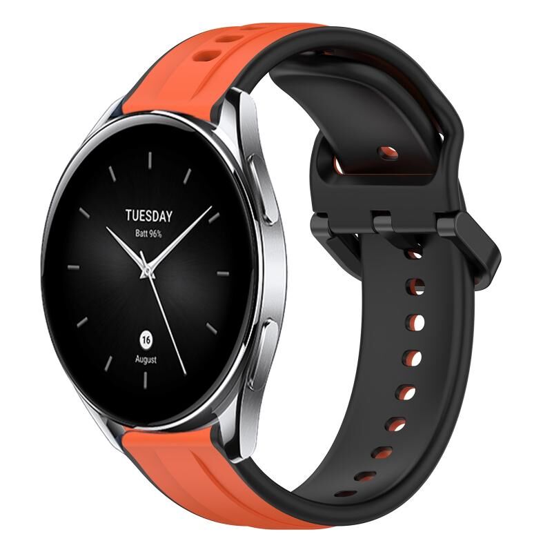 Για Xiaomi Watch S2 42mm 22mm 22mm Convex Loop Two-Color Silicone Watch Band (Πορτοκαλί + Μαύρο)