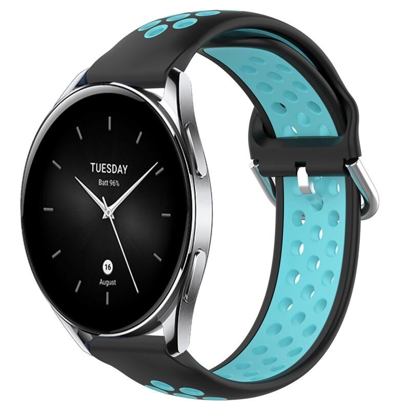 Για το Xiaomi Watch S2 42mm 22mm Διάτρητη αναπνεύσιμη αθλητική ζώνη ρολογιού σιλικόνης (μαύρο + μπλε)