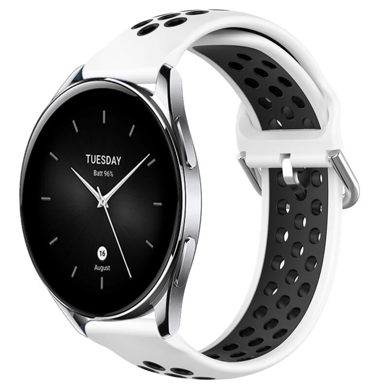 Για το Xiaomi Watch S2 42mm 22mm Διάτρητη αναπνεύσιμη αθλητική ζώνη ρολογιού σιλικόνης (Λευκό + Μαύρο)