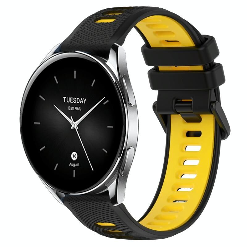 Για Xiaomi Watch S2 42mm 22mm Αθλητικό λουράκι ρολογιού σιλικόνης δύο χρωμάτων (μαύρο+κίτρινο)